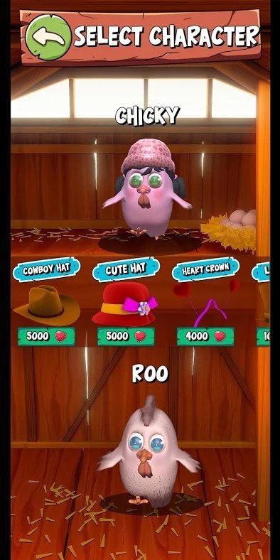 1、结合了传统的竖版跑酷玩法,躲避沿途的障碍物,追到前面的母鸡,这样你就能获得胜利。