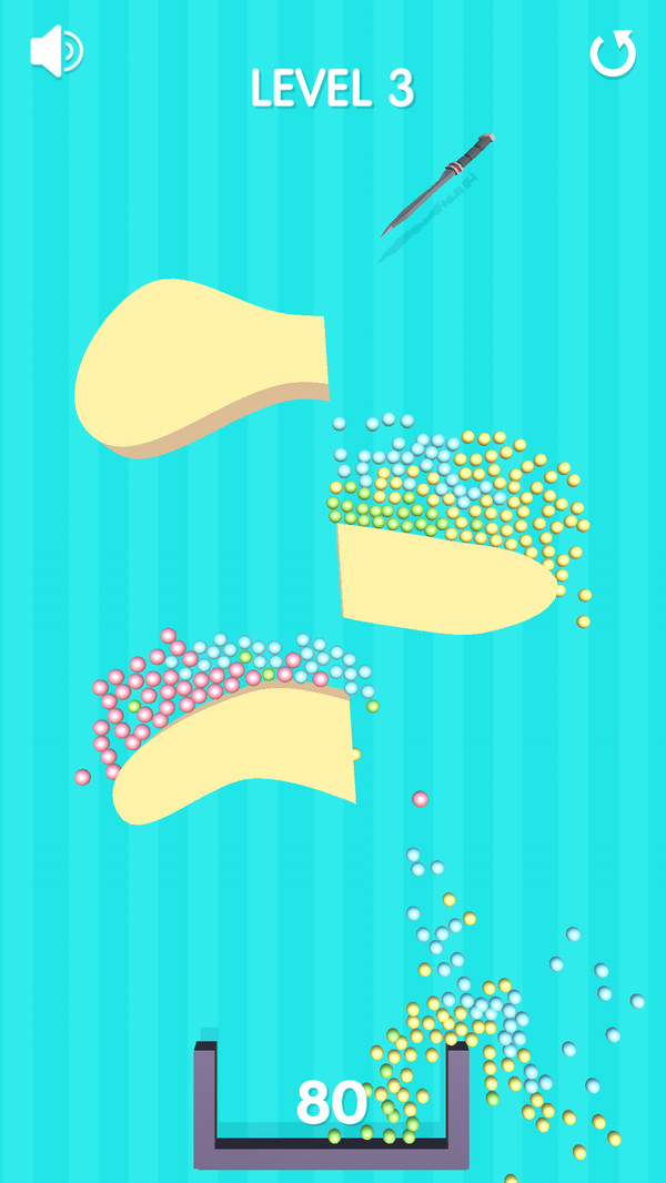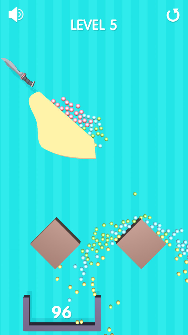 玩家需要利用小刀将小球移动到容器里,这里的每次切割都非常的关键,千万不能够随便就切割,因为很可能你的小球会无法进入到容器内,所以大家在每次割这个小球袋子的地方需要慎重的考虑,怎么样才能让小球顺利的落入到容器当中,途中会遇到各种障碍物,玩家需要灵活躲避,仔细辨别方向,尽可能将小球全部滚动到容器里,非常考验玩家的反应能力,趣味多多,快来下载吧!