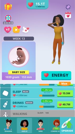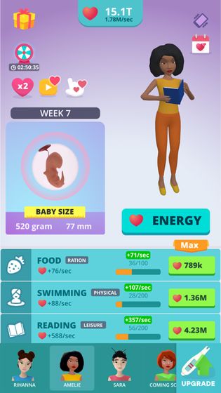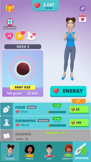 这是一款拥有精致卡通画面制作和放置休闲娱乐玩法的游戏,玩家可以模拟成为一名正处于妊娠期的怀孕妈妈,你的一切行为都将影响到你身体里的宝宝。根据游戏设置的各种培养计划,顺利的完成各个阶段的锻炼,让宝宝能够健康茁壮成长,顺利从你肚子里生产出来。