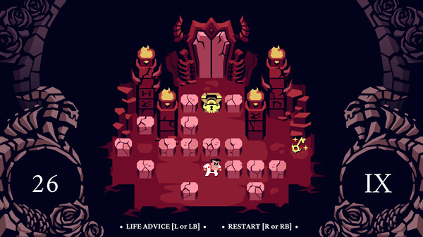 《Helltaker》的玩法看似简单,但实际上充满了深度。每关的谜题设计巧妙,需要你仔细思考和规划才能通过。游戏的节奏快而不失趣味性,让你每次解开谜题时都感到满足和成就感。