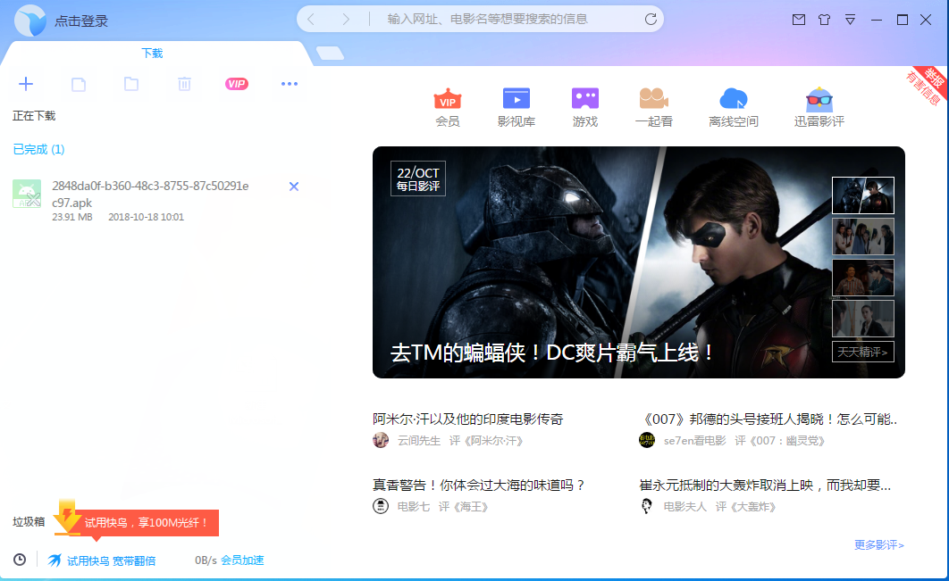 迅雷beta版本是一款非常好用的手机线上影视资源服务软件平台,在手机上就可以轻松的掌握最新的资讯以及影视资讯,帮助用户在手机上轻松的掌握更多的精彩的内容,线上的操作非常的简单,很多用户就像是在玩手机一样的,很轻的使用的软件,感兴趣的用户快来使用看看吧。