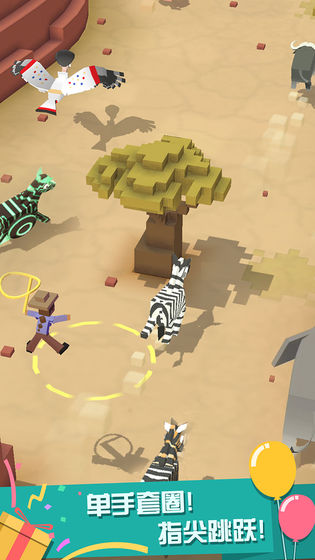 《疯狂动物园》是一款集3D像素、急速跑酷和模拟养成为一体的休闲小游戏。在游戏中你将扮演一名富有冒险精神的绝世牛仔。在高速移动的情况下与各种动物一较高下。你要尽可能多的套住动物,将它们统统带回飞船上的“空中动物园”中饲养;并进行园区升级,以便迎来世界各地的游客光临赚取更多金币。