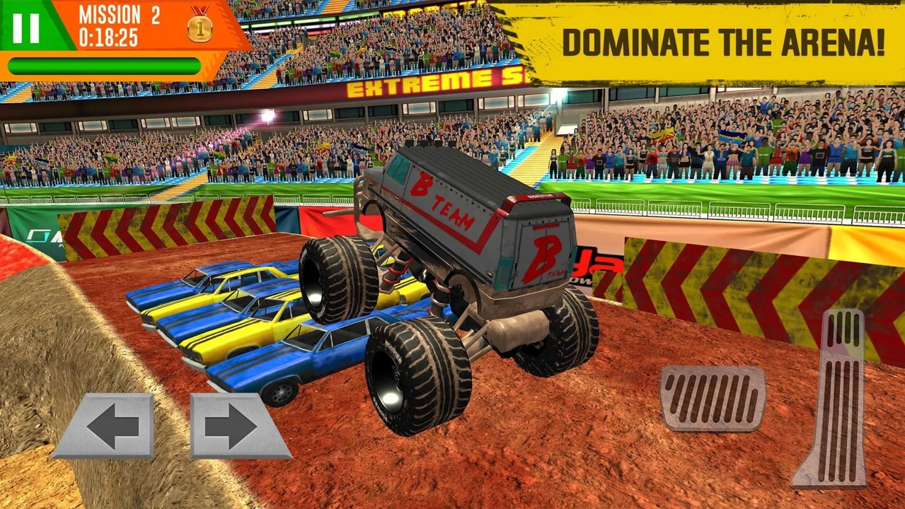 怪物卡车竞技场是一款关于车技的休闲游戏,在怪物卡车竞技场中你将驾驶各色各样的卡车挑战高难度动作,你仿佛来到了一个卡车杂技团,每一个卡车的动作都让你叹为观止,能否战胜对手全看你自己的驾驶技术了,喜欢就来下载吧!