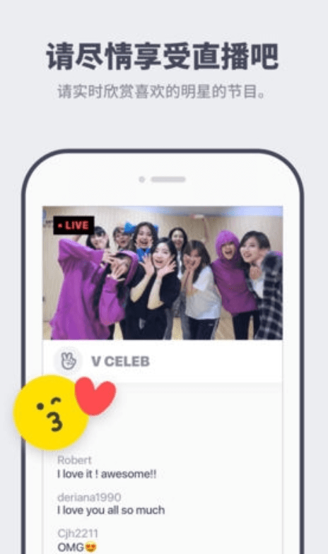 V live是一款国际明星直播APP。明星实时直播动态亲密互动。这里有你最喜欢的明星与粉丝的主题频道,在这里你也可以实时为你的爱豆应援送出爱心,实时互动在VLIVE直播一起见证你爱豆的高光时刻。