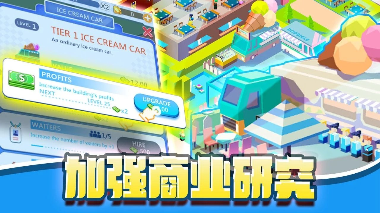 开始你的商业冒险,像真正的商业大亨一样生活,简单点击屏幕就能源源不断的获得金钱!