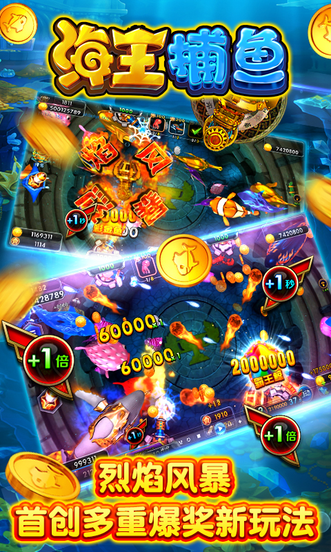 4.多种特殊鱼玩法,雷霸龙、神龙转轮、烈焰风暴、狂暴海王、钻头蟹、闪电鲨、炸弹蟹,暴富无上限!