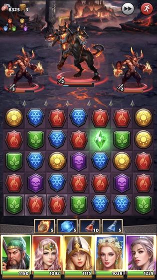 你需要控制底下的方块进行消除,每一次消除都可以让英雄发出一个技能。