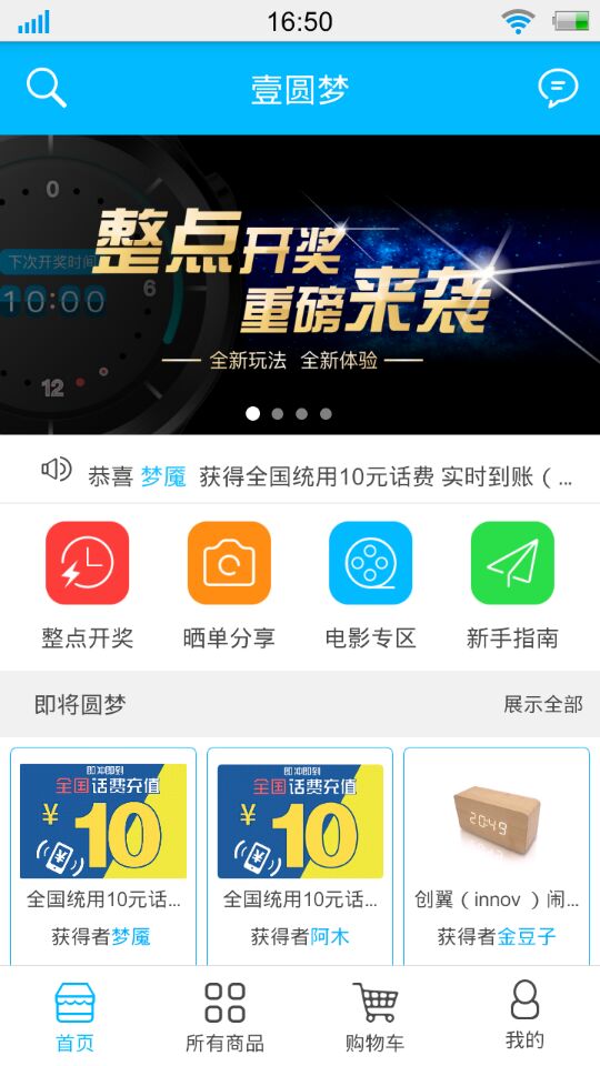 壹圆梦app是一个一元夺宝平台,壹圆梦app,将带给你一种全新的充满惊喜的购物体验,让您一元,买遍天下!壹圆梦是指只需1元就有机会买到想要的商品,圆自己心中的梦。即每件商品按销售价被平分成若干“等份”出售,每份1元,当一件商品所有“等份”售出后,根据壹圆梦规则产生一名幸运者,该幸运者即可获得此商品。一句话,壹圆梦,让你的未来不是梦!