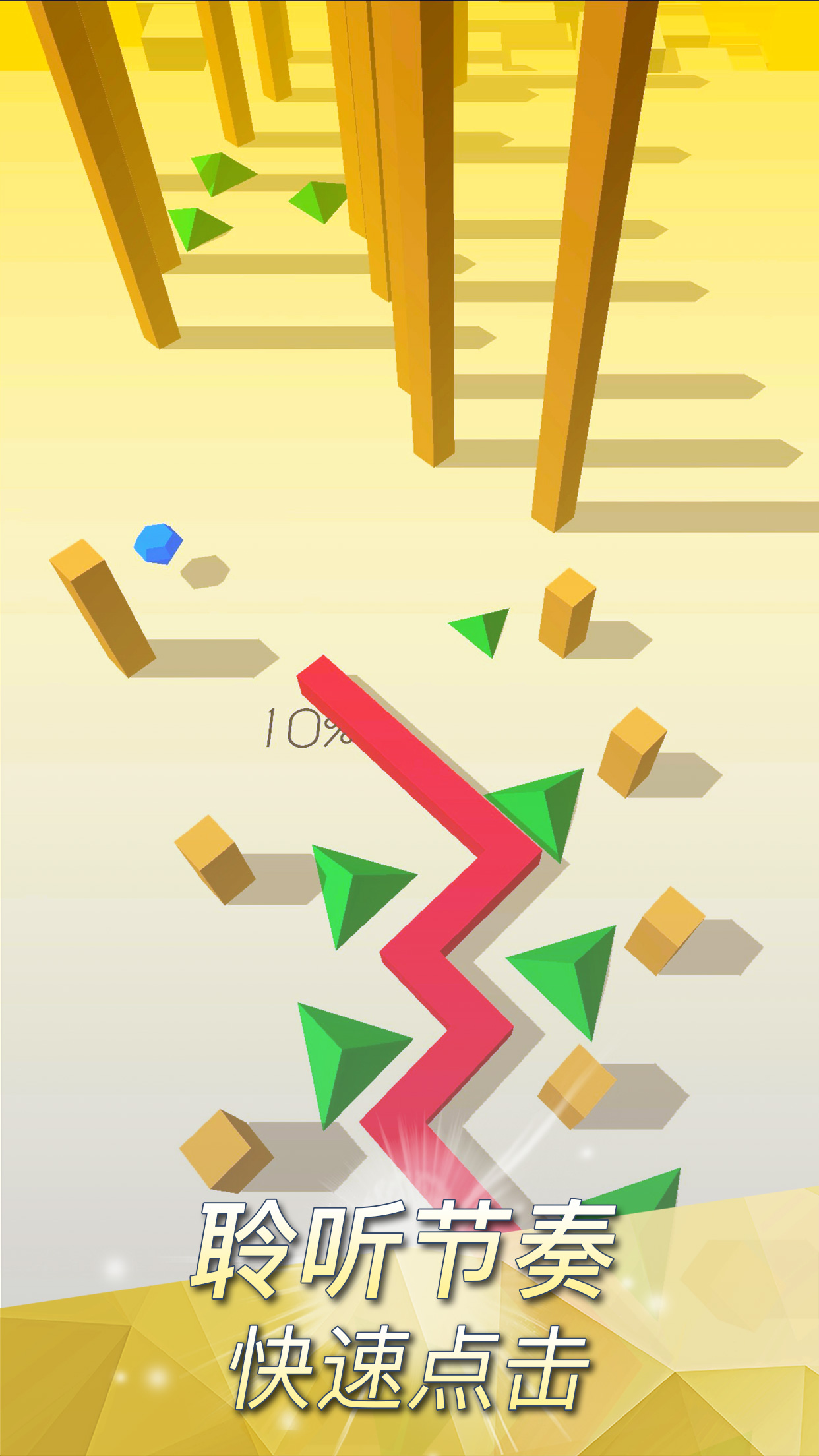 仔细聆听音乐,指引线条通过:多重地形。点击屏幕完成转向,躲避障碍,在多变的地形中到达终点。