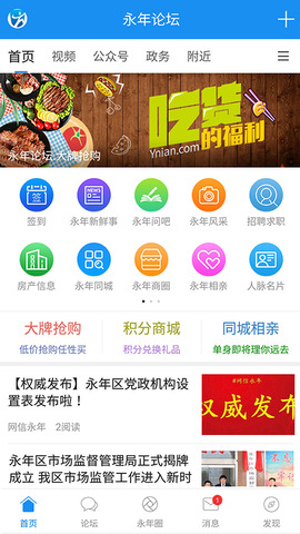 永年论坛包含永年论坛、永年信息网、企业名录、名牌限时抢购、永年拼单、分类信息、招聘求职、房产交易、永年楼盘、永年紧固件、永年物流专线、永年圈、永年商业圈、永年资讯、永年商城等栏目。