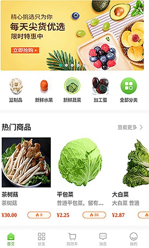 橘子采购是一款生鲜网购软件,软件的管理制度完善,配送服务也非常的完善,用户可以在这里高效的买到新鲜的生鲜食品,还等什么,感兴趣就快来下载吧!