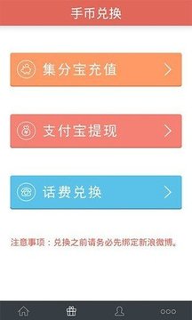 1、完成简单任务,便可以轻松赚手币,获得手币即可兑换话费、集分宝、支付宝提现。