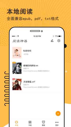 支持TXT,PDF阅读,导入和阅读更加方便;阅读,分页,笔记,书摘,注释,字典……只有您无法想到的超级功能。