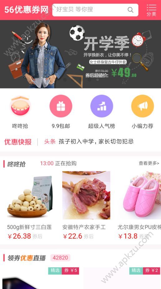 3.应用有咚咚抢、9.9元包邮、超级人气榜、小编力推栏目,各种优惠任你选!