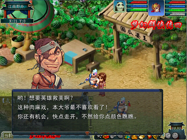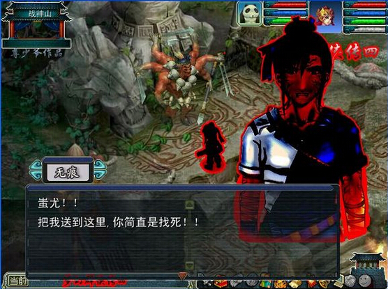 剧情对话,(为啥主角变样了 变成红色的了)不多说了,开打,打完后又要去五庄观,这个作者很闹心啊,就不能直接过去= =。