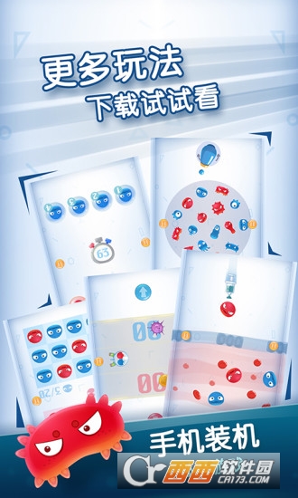 《红蓝大作战2》是火爆双人对战游戏《红蓝大作战》的续作。《红蓝大作战2》是一款益智休闲类游戏,游戏中一方控制红色病毒,另一方控制蓝色病毒,开始前选择比赛次数。本游戏中包含了14个竞争小游戏,在游戏中不停狂点屏幕病毒会不断膨胀,看谁的手速快,能压扁对手。点击屏幕中的小病毒,让屏幕中所有小病毒的颜色相同。