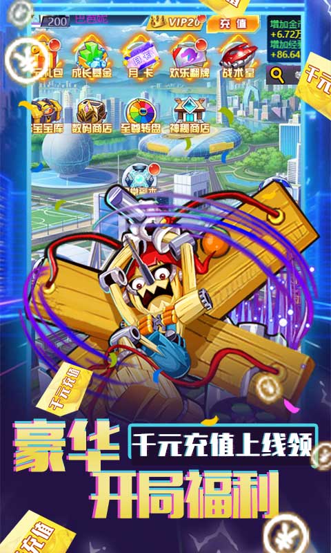 1、上线就送满V、一张千元充值卡和200万钻石!!