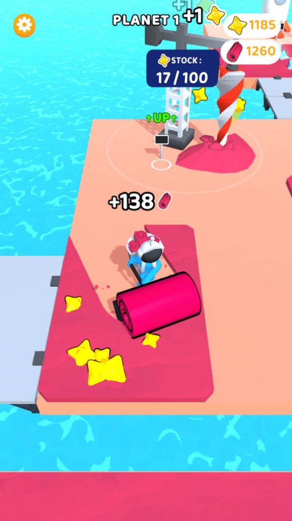 1、游戏只需要你动动手指进行灵活流畅的操作,就能很容易的去操控橡皮人推动着滚轮去进行游戏闯关。