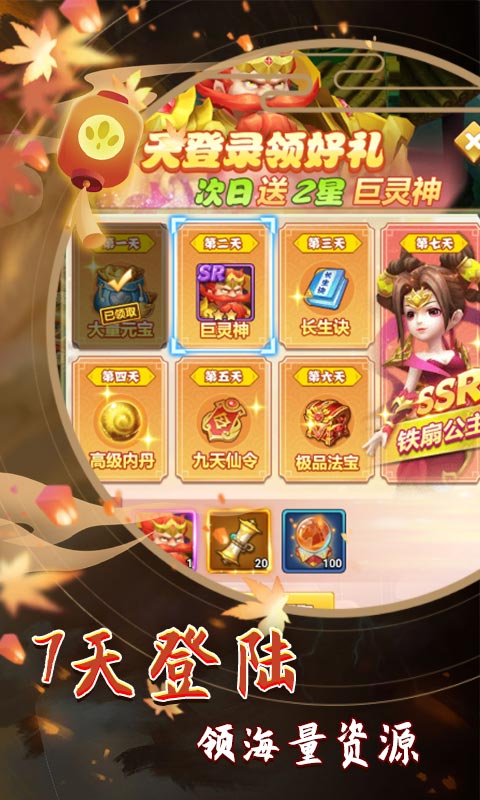 3.七天登陆领高级资源,更有SSR神将·铁扇公主