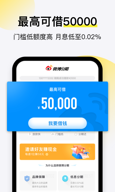 微博分期商城app为近干万用户提供0首付、低息、期限灵活的分期服务,给用户带来安心便捷的消费体验。