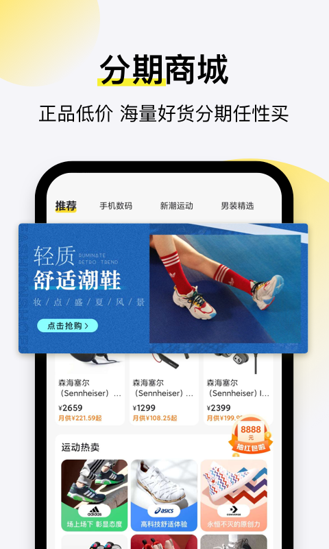 微博分期商城app甄选最热最潮好货,零首付,最高可分12期。