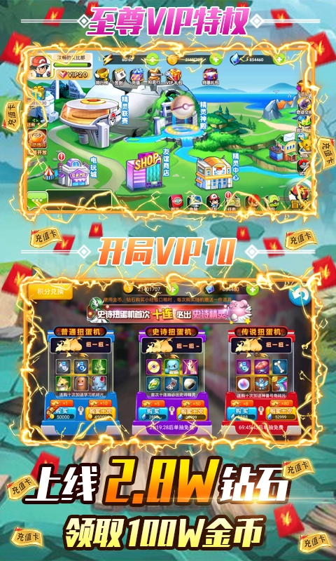 1、开局送VIP10、28888钻石、百万金币、满格体力,让你壕礼不断,推图不止,解锁宝贝新世界!