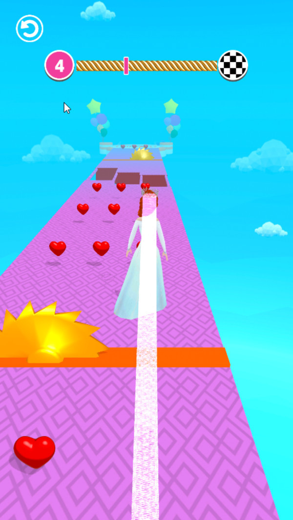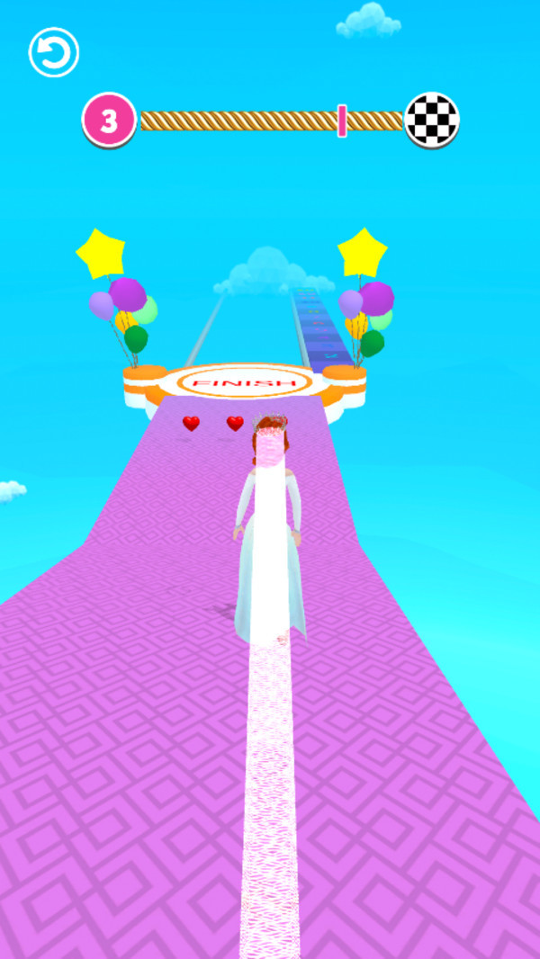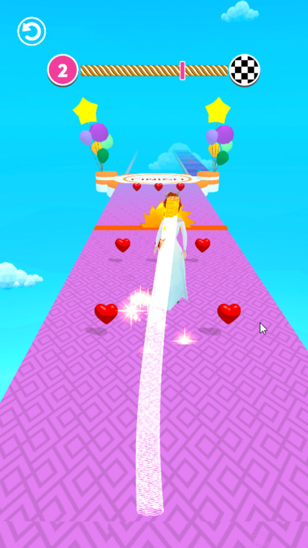 婚纱我最美是一款非常有趣的动作闯关类游戏,这个游戏有很多关卡,每个关卡都有不同的任务,玩家在这里可以轻松度过无聊的时光。而且,在比赛过程中,要跑得远,尽量保持面纱的长度,靠近新郎时不要剪得太短。赶紧来下载体验吧。