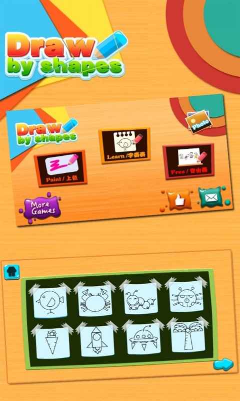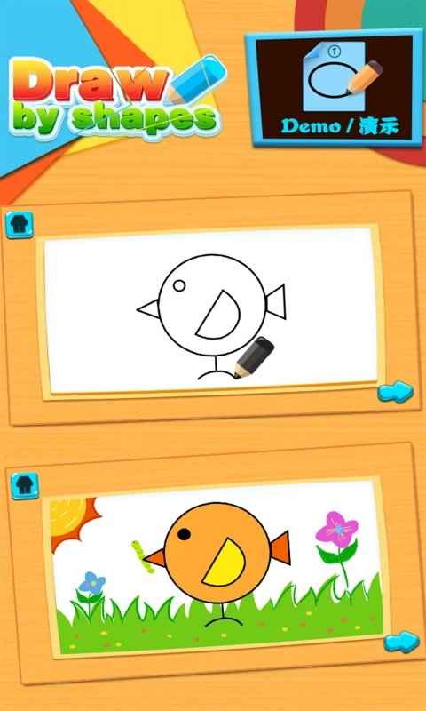 本游戏是不可多得的幼儿游戏。他尊重儿童的天性,把学习画画变成有趣的游戏,从孩子的兴趣出发,简单的形状拼合成有趣的画。让绘画变的简单有趣。