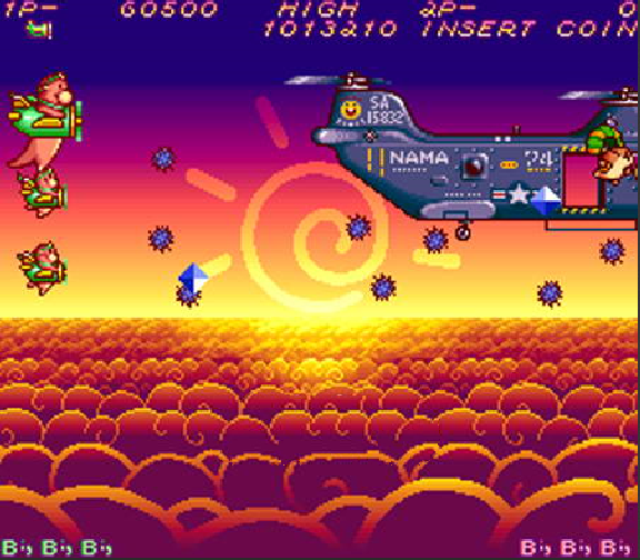 快乐射击手是款以横版进行的空战街机游戏,游戏非常容易上手,在游戏中你控制着一只熊为了拯救自己的儿女而去战斗,在激烈的战斗中通过击败敌人,从而掉落你的儿女。在救过来的同时,它们也为你一起去战斗。快乐射击手的画面也是非常卡通的,还有按右键会变身,呈无敌状态。