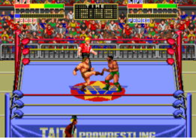 TAITO公司于1989年制作跟传统的摔角游戏规则一样,可以爬上擂台边角,也可以跳下擂台继续杀敌,但须在裁判数到20之前返回,还能搬屏幕出现的任何东西击打对手-本作的攻击判定分得很详细,当你击倒对手时,如果走到他的脚边按拳,就会抓起他的脚转几圈后扔出,如果是在他的头边按拳,就是把他揪起来。 总共只有两个键,当对手倒地时,可以两键齐按,这时主角就会压制住对手,如果能坚持到裁判数到3,就可以获得胜利。 KOF收集狂 2006-5-26-