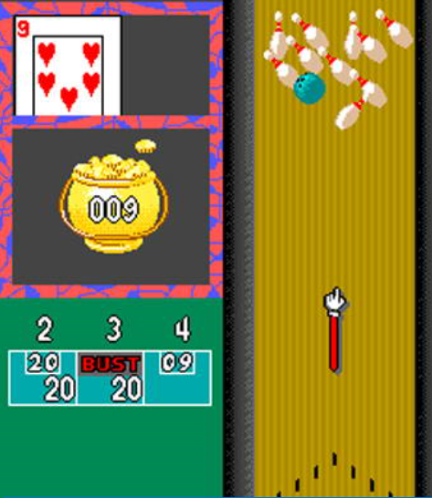 flash-o-matic '是一个变化的主题是保龄球。在这个游戏中闪烁的得分值来回移动的胡同。球员的碗,得分值停止时,球首先击中一个引脚。如果球员投出一个打击,他会得到得分值。如果他得到一个备用,他得到一半的原始价值。如果他不能转换多余的,那么他得到的每一个引脚,他击倒了1点。分数可以上升到近10000分!