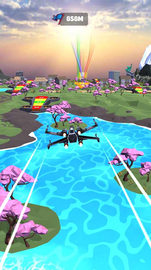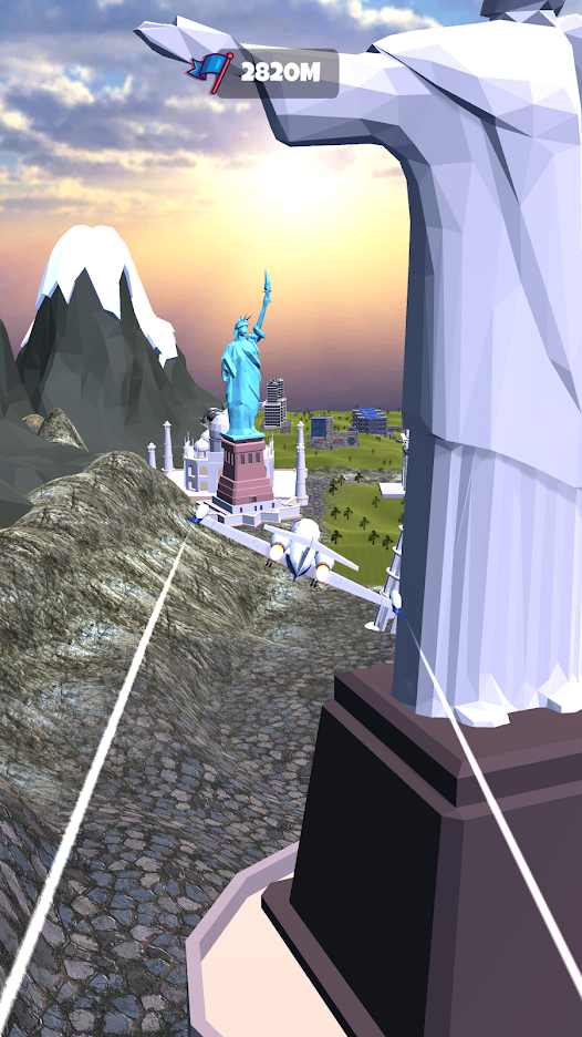 这是一场来自天空的空中竞赛,关卡平台逐渐降落在空中,当玩家控制反派冲出轨道时必须控制反派左右移动并降落在下面的平台上,关卡的持续降落让挑战变得更加刺激,玩家只有降落在平台上才能不断突破关卡!