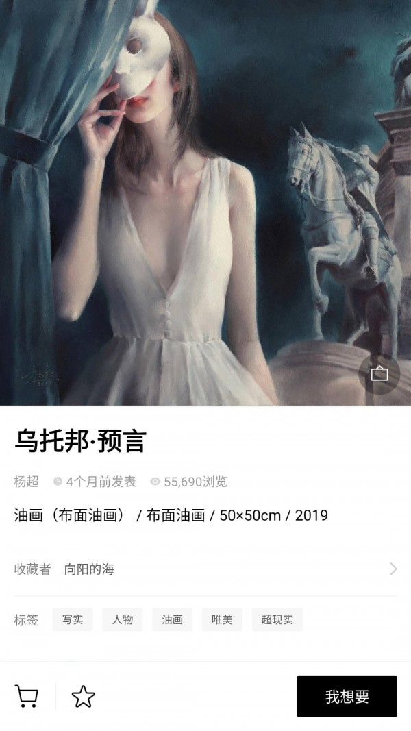 用户可以搜索、关注艺术家,或私信互动、交易购买