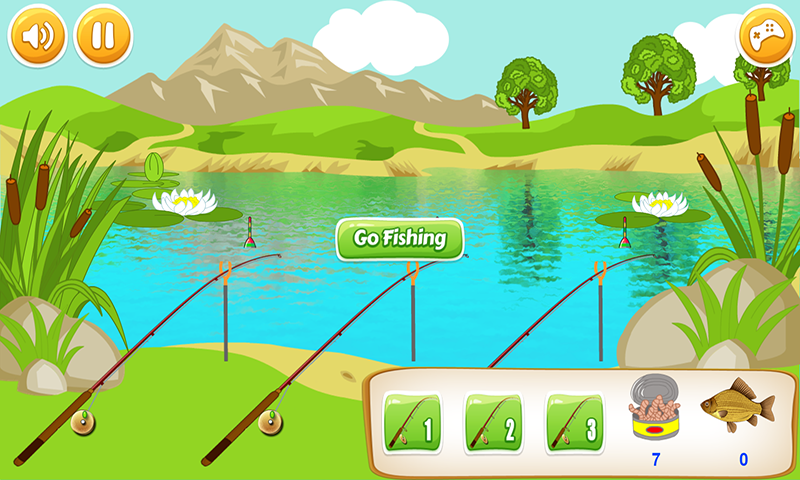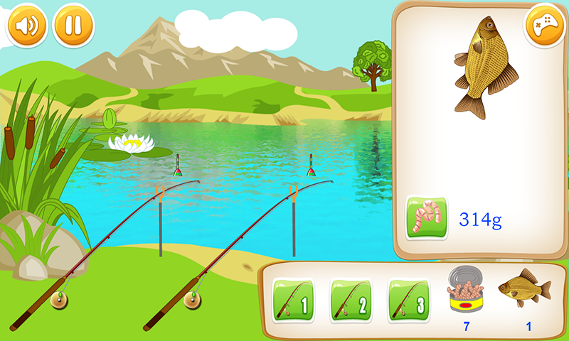 游戏中,我们一共有三把鱼竿,我们需要投放鱼饵,把握时机等鱼儿上钩的时候收杆,一起来试试你可以钓到多大的鱼儿吧!