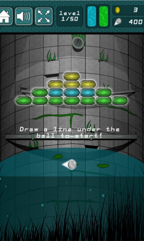 游戏中,我们需要在球下划线将所有的砖块进行消灭即可顺利过关,消灭带能量标识的砖块可获得线条能量,如果线条能量耗尽,小球就会落入水底,现在就让我们一起来试试吧!