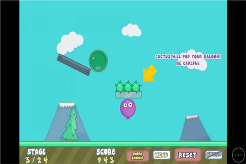 气球飞天加强版再度来袭。紫色小气球想要飞到天上自由飞翔,不过它被障碍物挡住了,快来帮助它飞上去吧。可别碰到尖刺,不然小气球会被刺破的。赶紧来试试你能不能闯关成功。