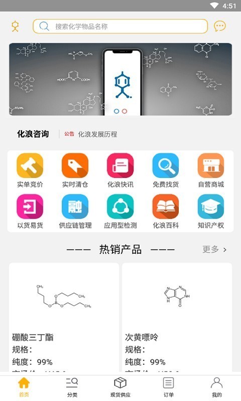 化浪是一个具备实时库存、价格透明的化学品电商综合服务平台,以接近低价的化工现货、多重线上优惠助您找到优质的化工原料,保障采供双方的交易安全。