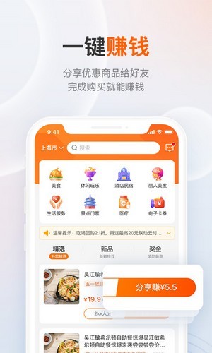 享出发团团赚app是一款口碑极好的团购购物赚钱平台。享出发团团赚能够给大家带来超级省钱的团购购物方式,而且享出发团团赚app还有购物赚钱任务,完成任务就有丰厚现金返利!