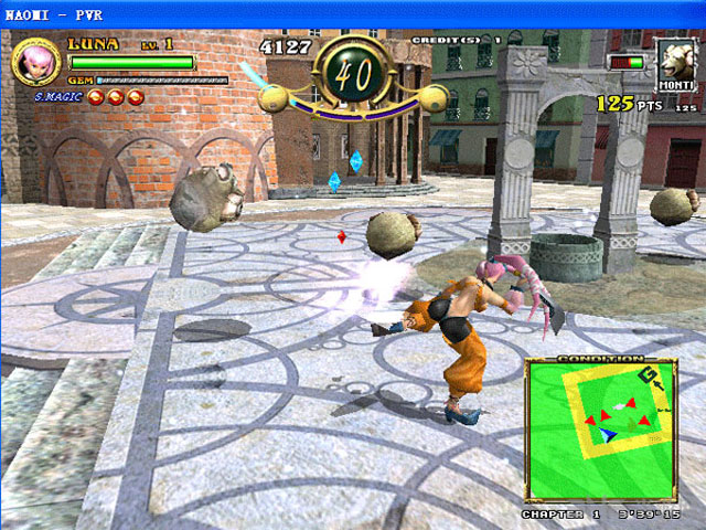 现在这个世界由于人们滥用魔法,而吸引来了异界的魔物,如果不快点阻止他们这个世界很快便会被摧毁,所以这个时候正是我们的战神大展身手之时。游戏的场景非常恢宏,这是一般街机作品无法拟比的,在战斗方面这款游戏主要以高频率的连击为主,由于连招的门槛相当的低,玩家几乎随便怎样出招都可以形成密集的连续技,当然对于熟练的玩家来说,基本一套连续技下来没有哪一个怪还站得住。另外游戏中也加入了相当齐全的RPG功能,在道具、技能、等级方面一个都不马虎,可谓是一个内容相当全面的街机作品。