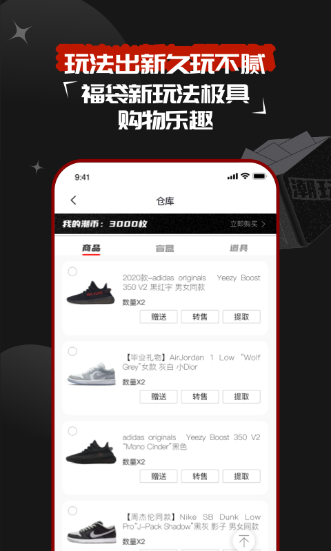 1、以球鞋,服装,潮玩,彩妆,数码3c等于一体的游戏社交电商平台