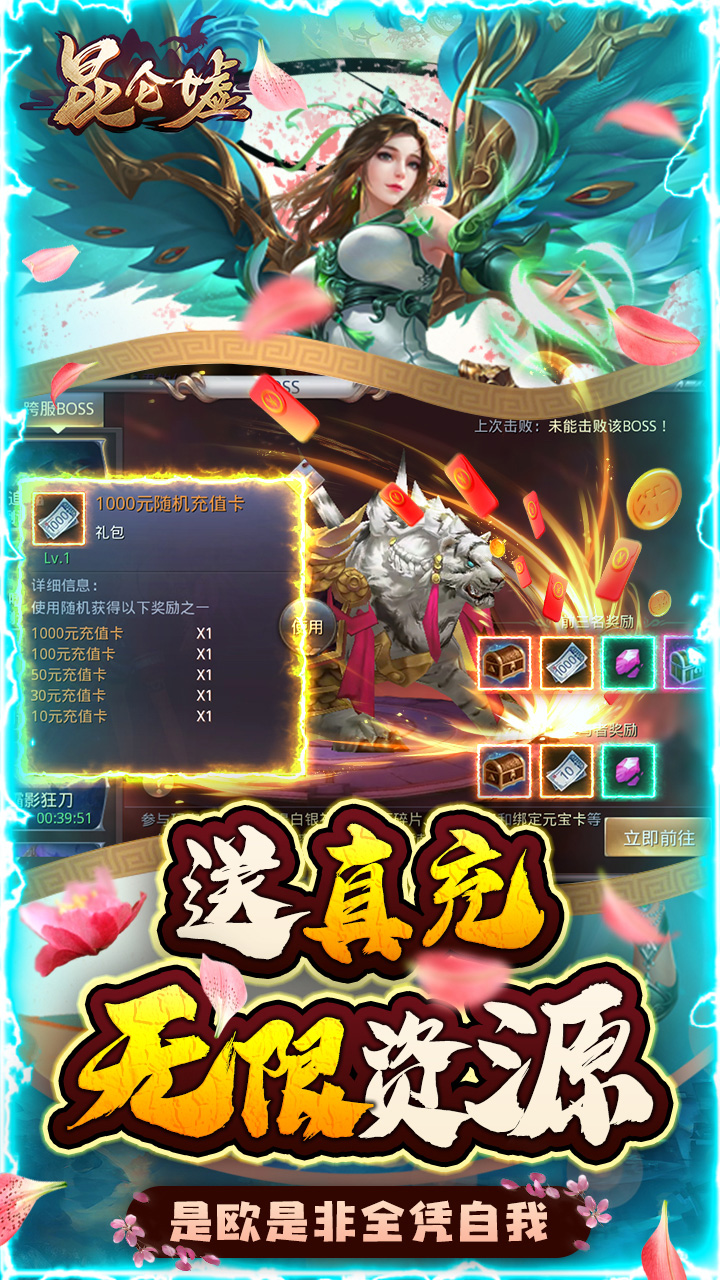 3、欧皇开真充,参加跨服boss和冰火战场可以获得随机真充卡,最高可得千元真充卡,使用后可激活每日累充活动,是欧是非,证明自己血统的时刻到了!