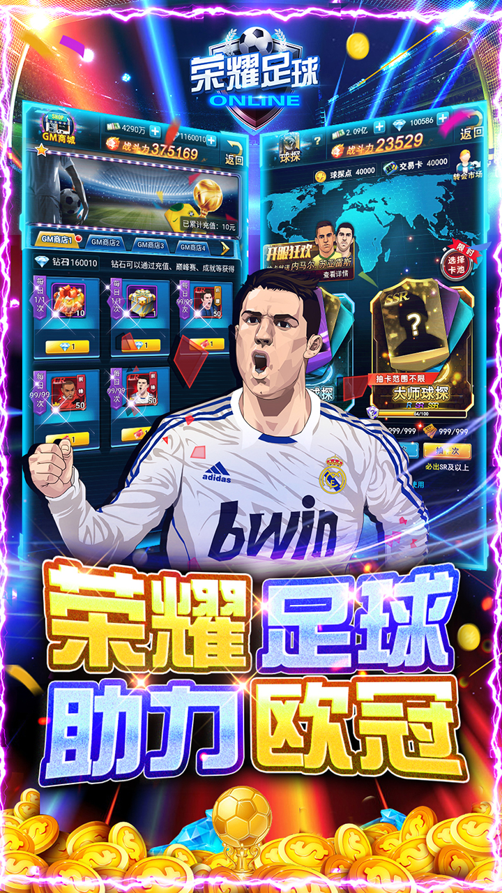 2、玩就送永久真满V、钻石*100万、UR梅西*1、一千抽