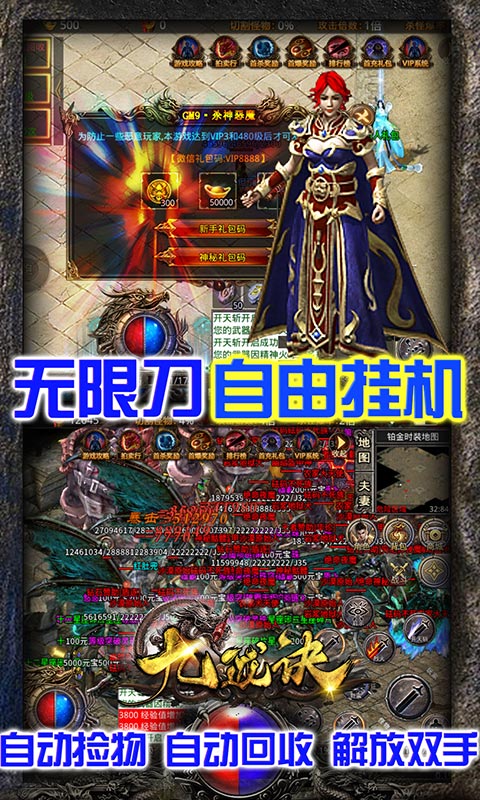 九珑决(GM无限刀)是一款经典的1.80单职业动作冒险类传奇游戏!回忆05韩版杀神恶魔,回到那个靓装时代,前期装备二合一,后期装备全靠爆,升级容易,人人平等,传奇散人天堂,2021年具好玩!经典怀旧传奇!激情不断。