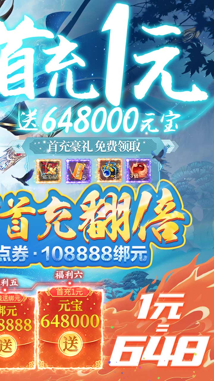 1、上线福利:送满V、100元点券、108888绑元、成长助力大礼包、专属定制称号!