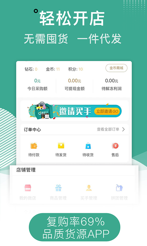 操作便捷: 分销商入驻平台后,自动生成专属微店,一键上架商品,自主设定利润,一键分享商品图文详情和链接到朋友圈。订单成交后,系统将一件代发并自动分润。