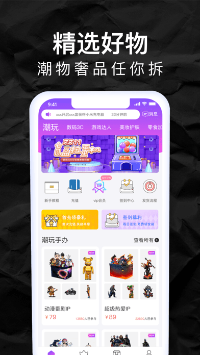潮品丰富多样,包含海量人气数码产品、手办、模型、潮品、限定玩具,稀有款隐藏款盒子等你拆箱。