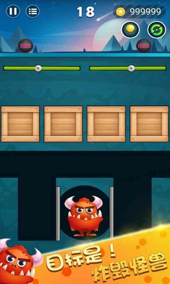 可以利用障碍的壁垒让炸弹在上面滑行,直到顺着挖掘的通道达到怪兽;