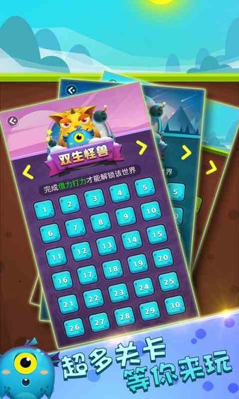 上百种的关卡挑战,只有按照顺序消灭所有怪兽才能解锁新关卡;