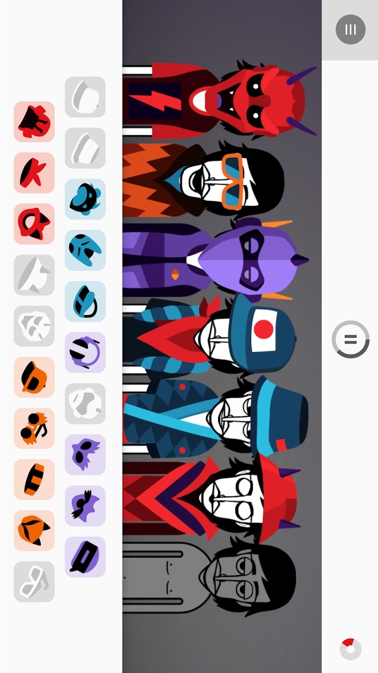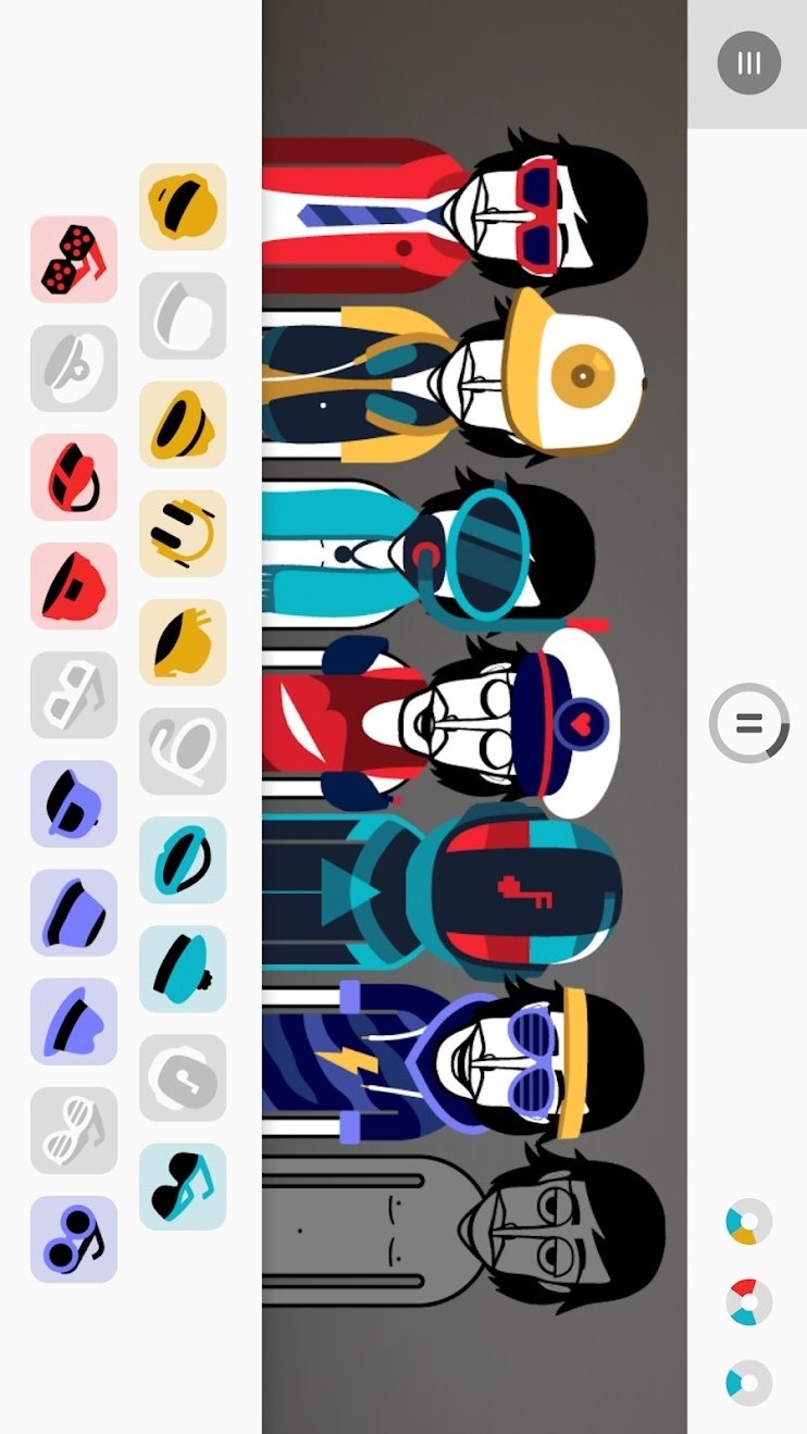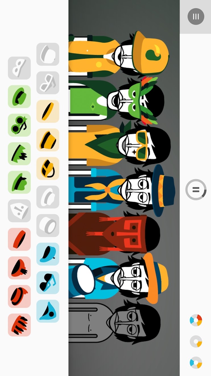游戏风格独自成一派,源自一个玩B-BOX的音乐网站,通过录制的方式分享给他人,没想到出了移动端,操作也很简单,直接拖动不同颜色的装饰物(乐器)给人物戴上即可,自行编奏一首嘻哈曲,玩着蛮上瘾的,很有节奏的鼓点,有种在打碟的感觉。