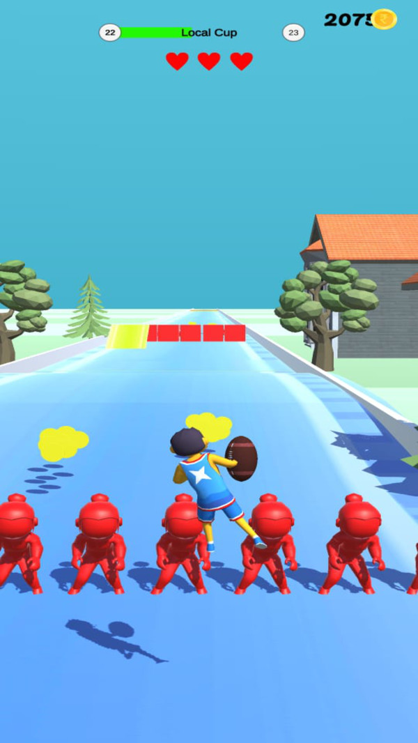 这还是一个简单有趣的休闲类游戏。玩家进入游戏后汇处于一个美式足球的比赛中,您将是这个队伍的一名球员将,您需要不断的挑战,完成系统给出的游戏任务。玩家要玩的轻松,喜欢的小伙伴,快来下载体验。